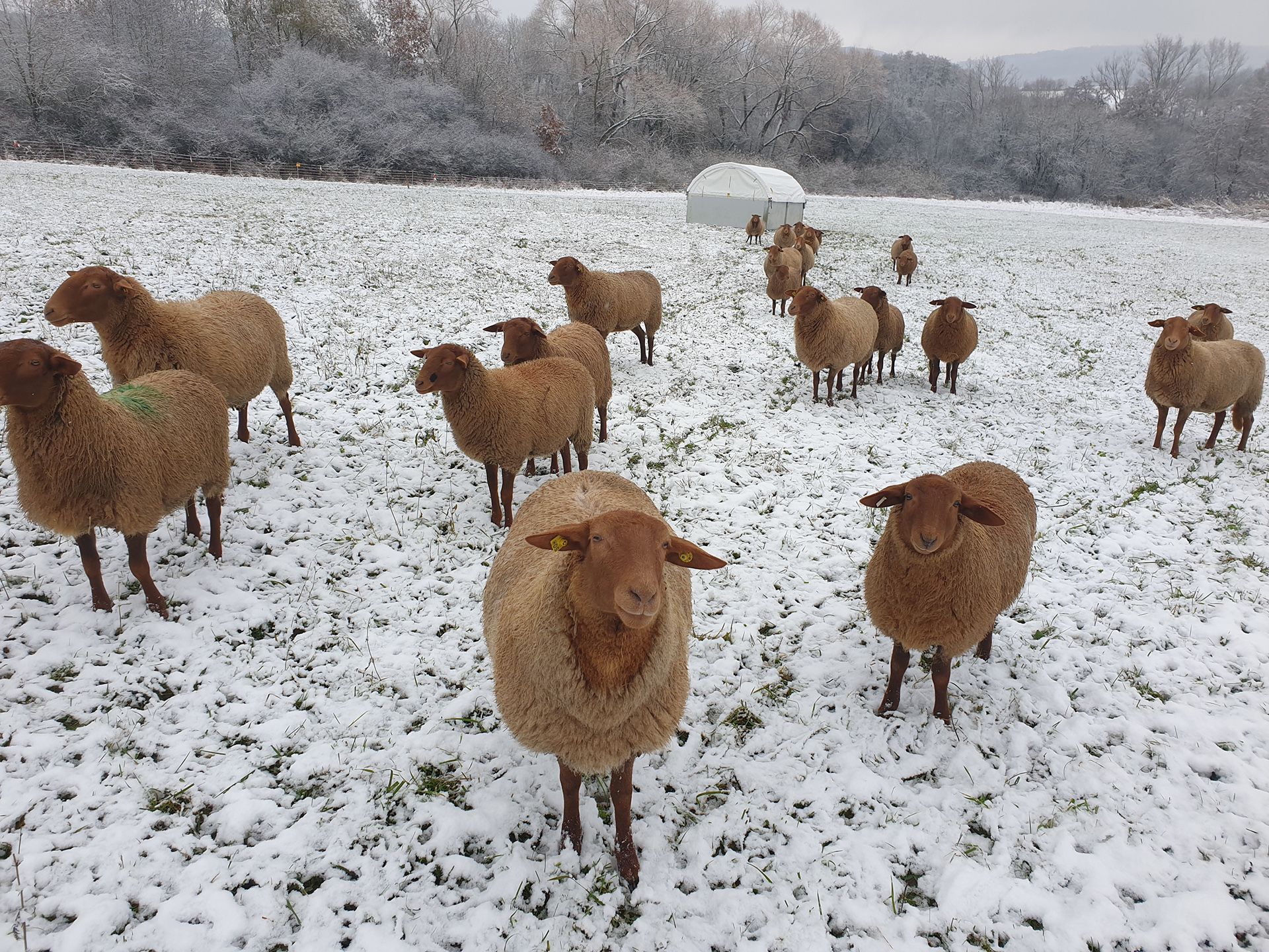 Zur Zeit umfasst unsere Herde ca. 80 Tiere, davon etwa 35 Mutterschafe.